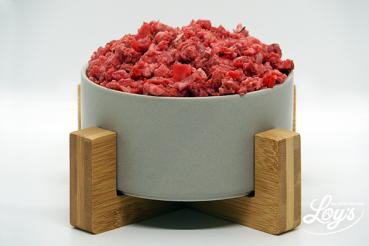 Der Fleischanteil sollte durchschnittlich 70% der Mahlzeit ausmachen und die restlichen 30% sollten durch Flocken, Gemüse, Obst, Mineralien und Vitamine ergänzt werden.
